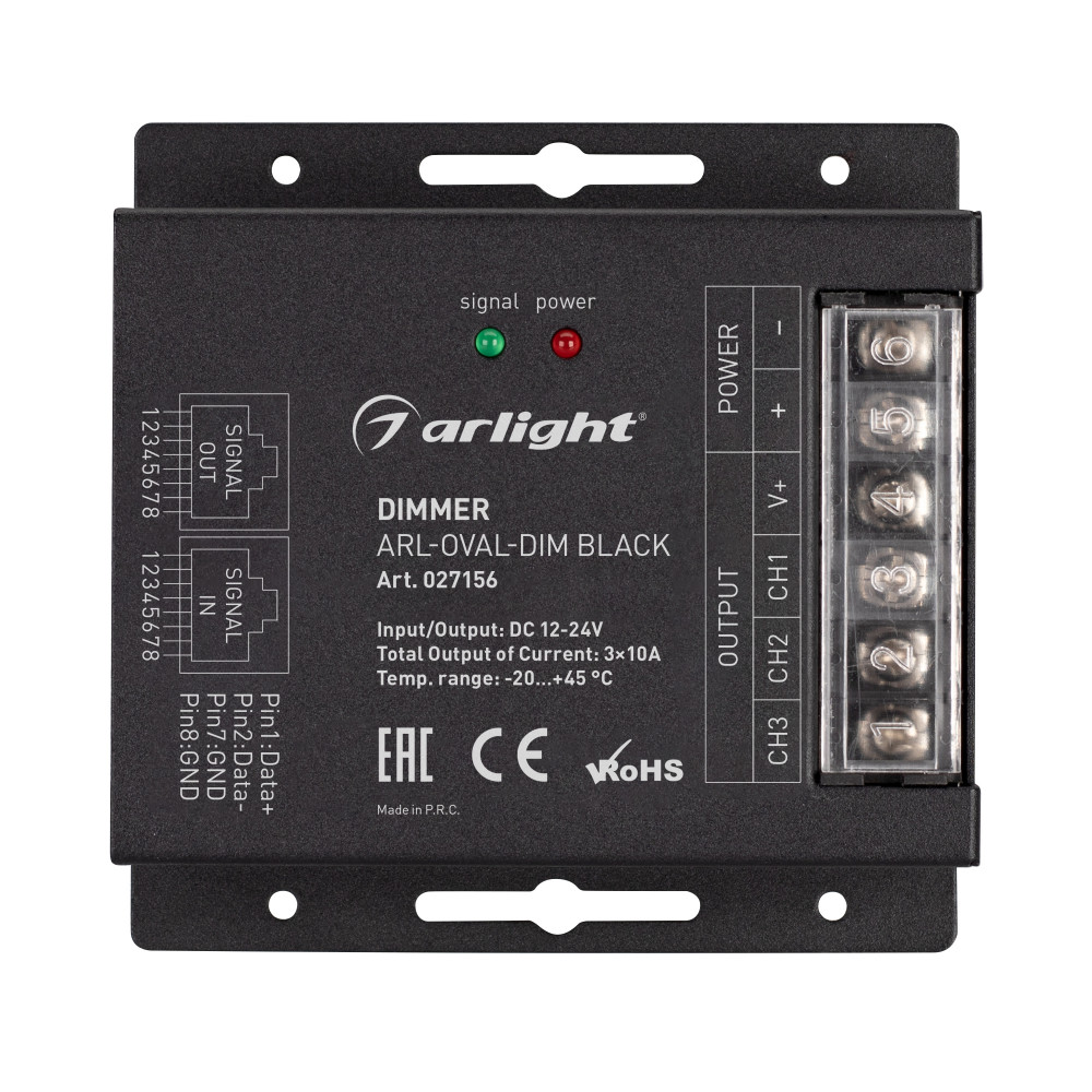 Описание Диммер ARL-OVAL-DIM Black (12-24V, 3x10A, ПДУ Овал, RF, RJ45) 027156