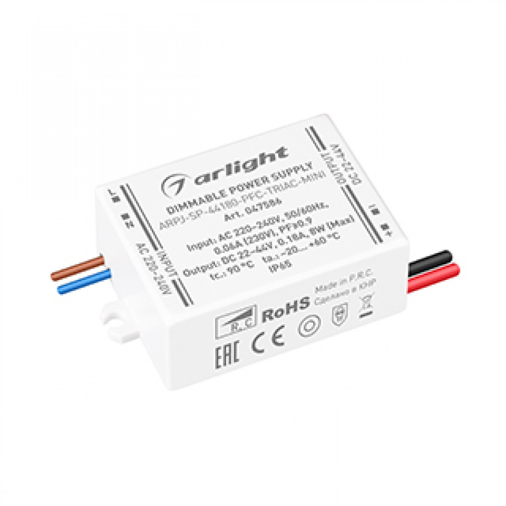 Описание Блок питания ARPJ-SP-44180-PFC-TRIAC-MINI (8W, 22-44V, 180mA) 047586