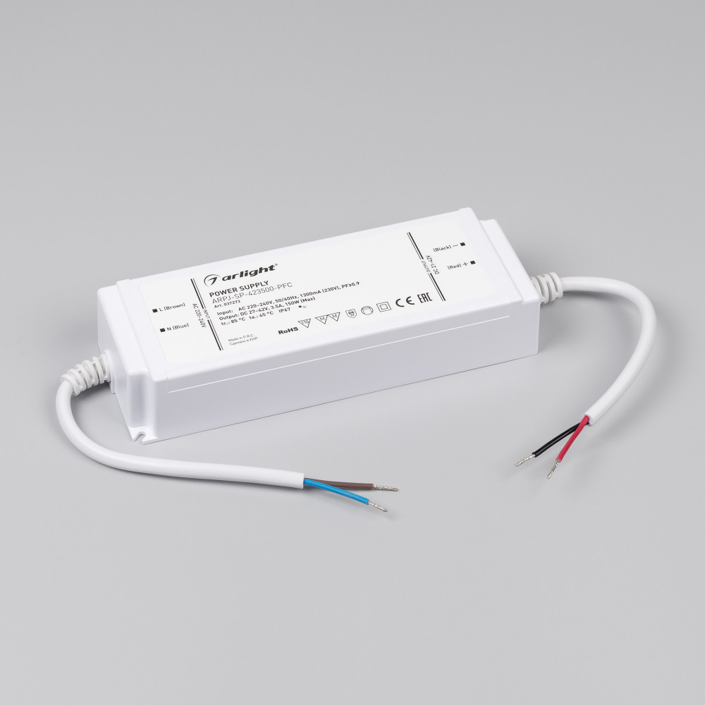 Блок питания ARPJ-SP-423500-PFC (150W, 27-42V, 3.5A) 037273, Источник тока с гальванической развязкой для светильников и мощных светодиодов. Входное напряжение 220-240 VAC. Выходные параметры: 27-42 В, 3500 mА, 150 Вт. Встроенный PFC >0.9. Герметичный пластиковый корпус IP 67.