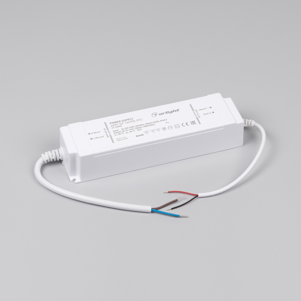 Блок питания ARPJ-SP-143700-PFC (100W, 72-143V, 0.7A) 037895, Источник тока с гальванической развязкой для светильников и мощных светодиодов. Входное напряжение 220-240 VAC. Выходные параметры: 72-143 В, 700 mА, 100 Вт. Встроенный PFC >0.9. Герметичный пластиковый корпус IP 67.