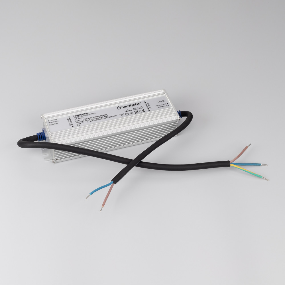 Блок питания ARPJ-LG-565600-PFC (200W, 25-56V, 2.6-5.6A) 039541, Источник тока с гальванической развязкой для светильников и мощных светодиодов. Входное напряжение 120-277 VAC. Выходные параметры: 25-56 В, 2600-5600mА (регулировка встроенным потенциометром, установка по умолчанию 4200мА), 200 Вт. Встроенный PFC >0.95.