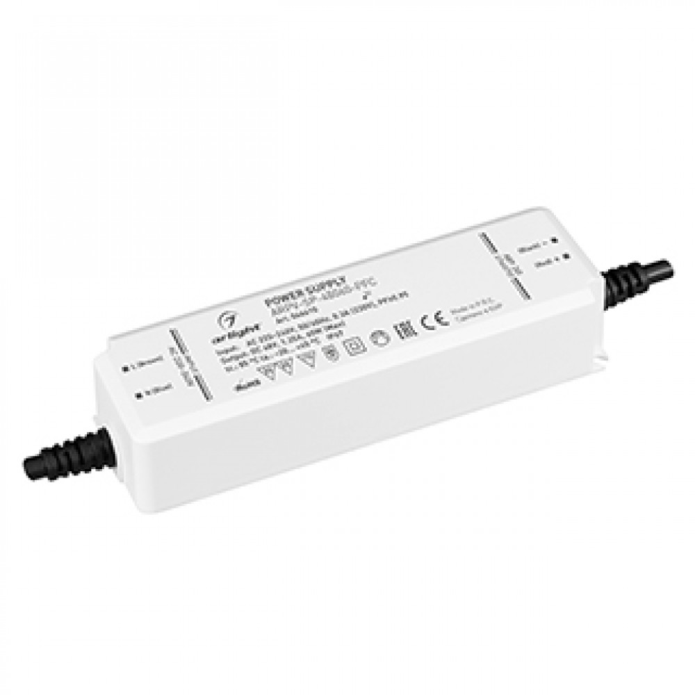 Блок питания ARPV-SP-48060-PFC (48V, 1.25A, 60W) 046610, Источник напряжения с гальванической развязкой для светодиодных изделий. Входное напряжение 220-240 VAC. Выходные параметры: 48 В, 1,25 А, 60Вт. Встроенный PFC >0.95. Герметичный пластиковый корпус IP 67. Рабочая температура -20…+45C°