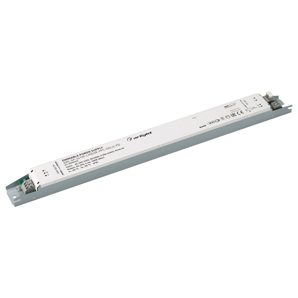 Доставка Блок питания ARV-SP-24100-LINEAR-PFC-DALI2-PD (24V, 4.2A, 100W) 025596(2) , Диммируемый источник напряжения по протоколу DALI 2.0 и функцией PUSH DIM с гальванической развязкой для светодиодных изделий. Входное напряжение 220-240 VAC. Выходные параметры: 24 В, 4,2 А, 100 Вт. Встроенный PFC >0,95. Негерметичный алюминиевый корпус