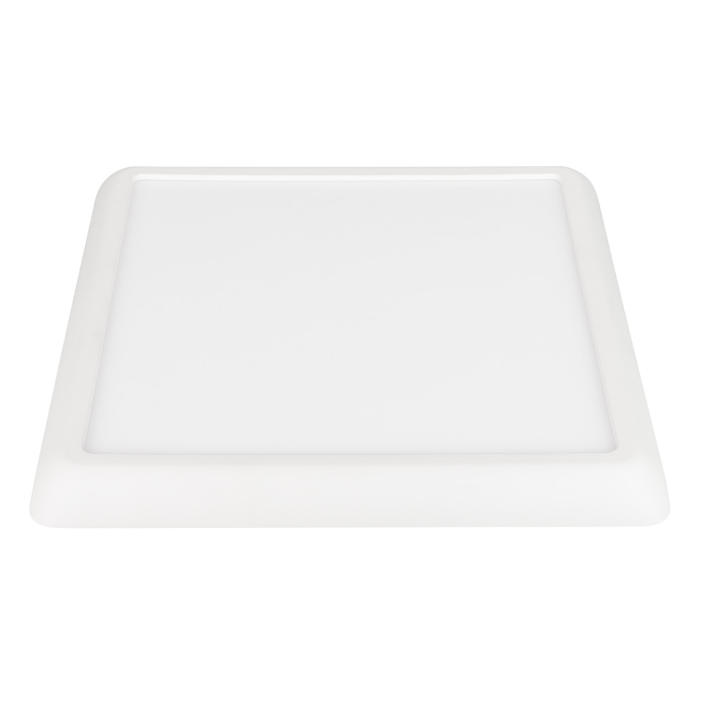 Накладной/встраиваемый светильник с изменяемой мощностью и цветовой температурой. Мощность 12-18 Вт, св. поток 1000-1700 лм, 83-94 лм/Вт, теплый 3000 K, дневной 4000K, белый 6000K, CRI>80, угол 120°, напряжение питания 230 В. Белый квадратный корпус из пл