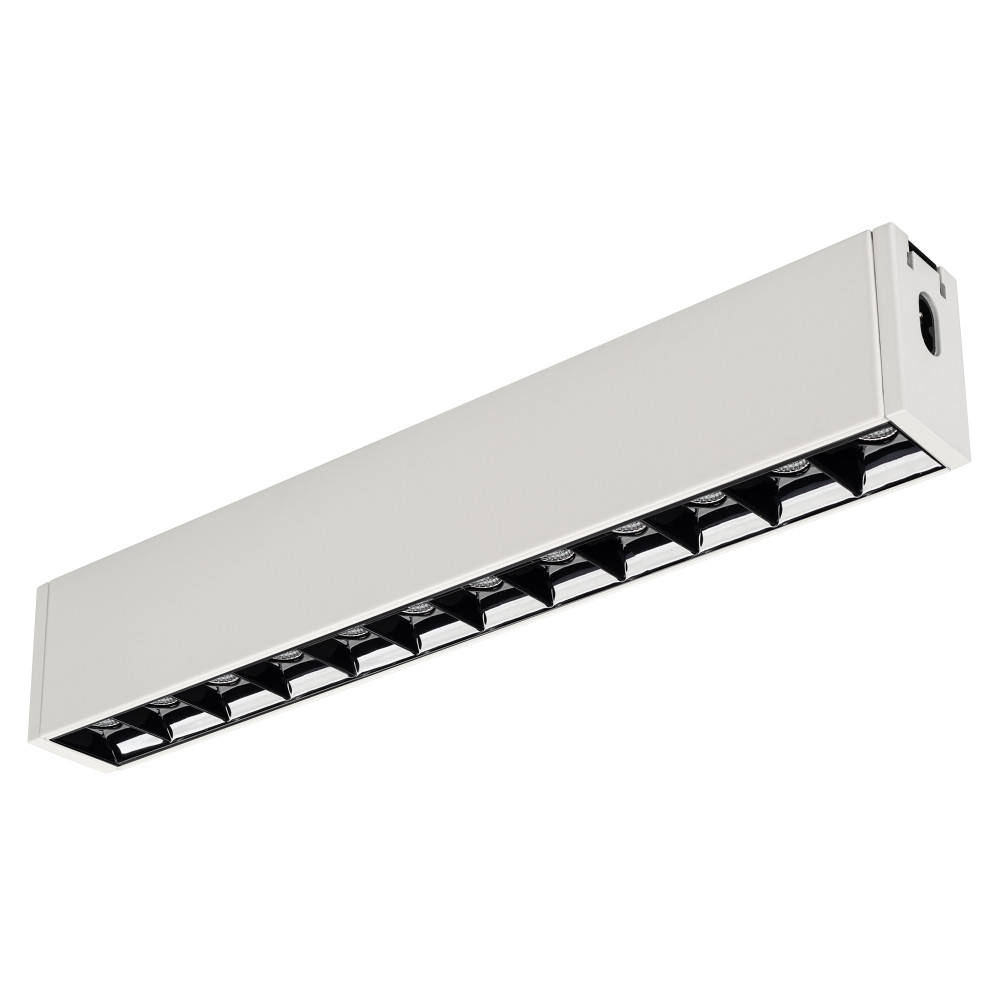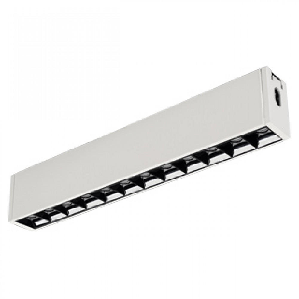 Подвесной/накладной светильник для системы CLIP 38мм, 12Вт. Цвет свечения ДНЕВНОЙ 4000K, световой поток 860 лм, угол 36°, CRI>90. Корпус прямоугольный, металл, цвет белый, IP40. Размеры LxWxH 330x38x64мм. Входное напряжение DC24V, мощность 12Вт
