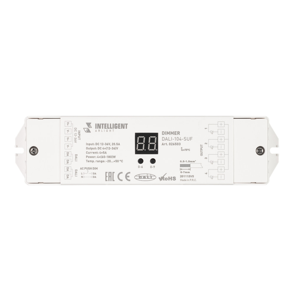 Описание INTELLIGENT ARLIGHT Диммер DALI-104-SUF (12-36V, 4х5А) 026503