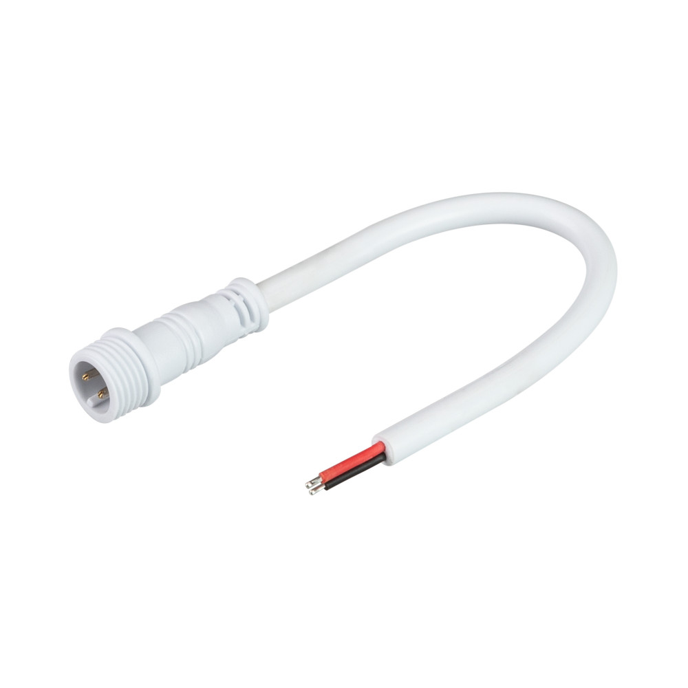 Разъем выводной DCWP-MONO-2PIN-L150-M 032852, Круглый герметичный разъем серии ARL, 2 pin ПАПА с резьбовым креплением для подключения питания герметичных одноцветных светодиодных лент. Корпус IP65. Провод 20AWG (0.5 мм2), длина 15 см. Максимальный допустимый ток 3 А. Номинальное напряжение 50В