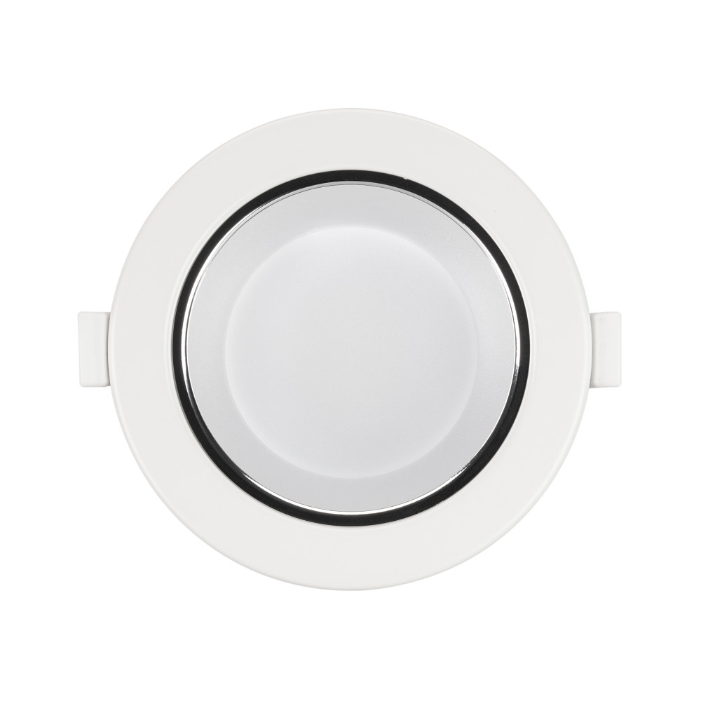 Светильник даунлайт с изменяемой цветовой температурой и переключателем на корпусе. Мощность 10 Вт, св. поток 880 лм, 88 лм/Вт, белый 6000К, или дневной 4000К, или теплый 3000К (выбор цвета свечения при установке, фиксированный), CRI>80, угол 80°, напряже