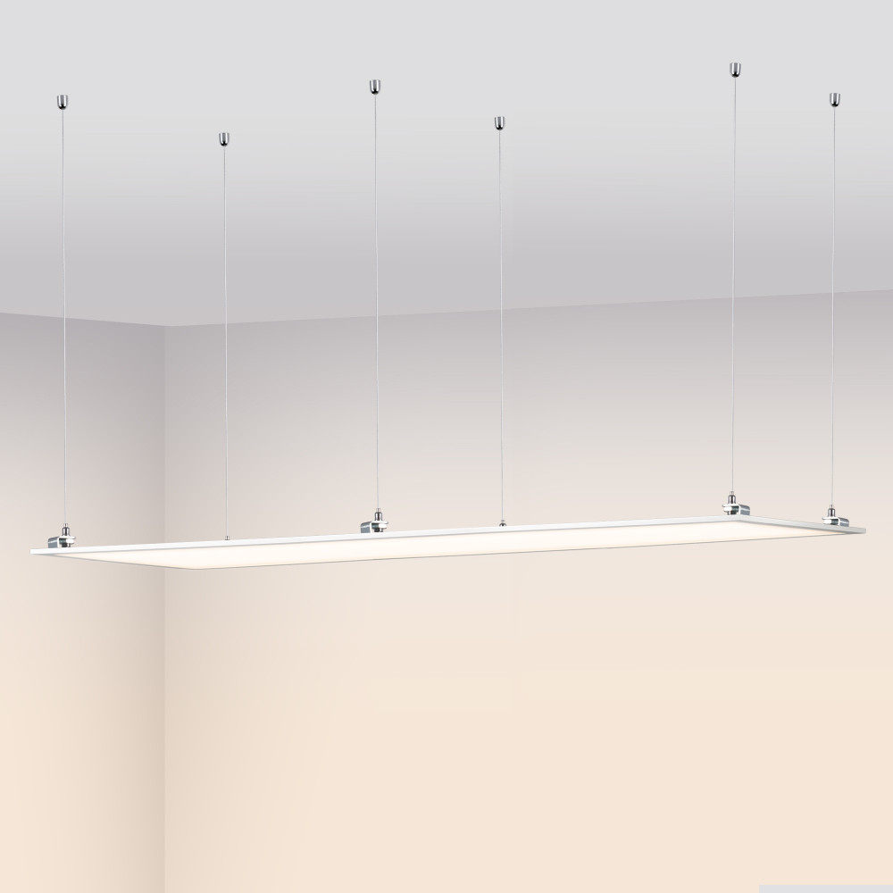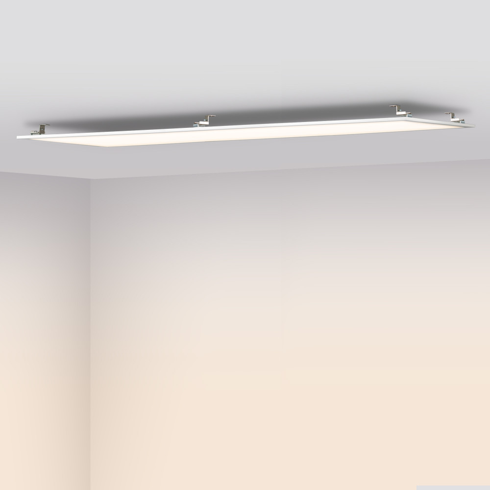 Светодиодная панель с торцевой заcветкой. Мощность 40 Вт, св. поток 3600 лм, 90 лм/Вт, теплый 3000 K, CRI>80, угол 120°, напряжение питания 230 В. Белый квадратный корпус из алюминия, экран PS, LGP PMMA, степень защиты IP40. Размер (ДхШхВ) 1195х295х10,4 м
