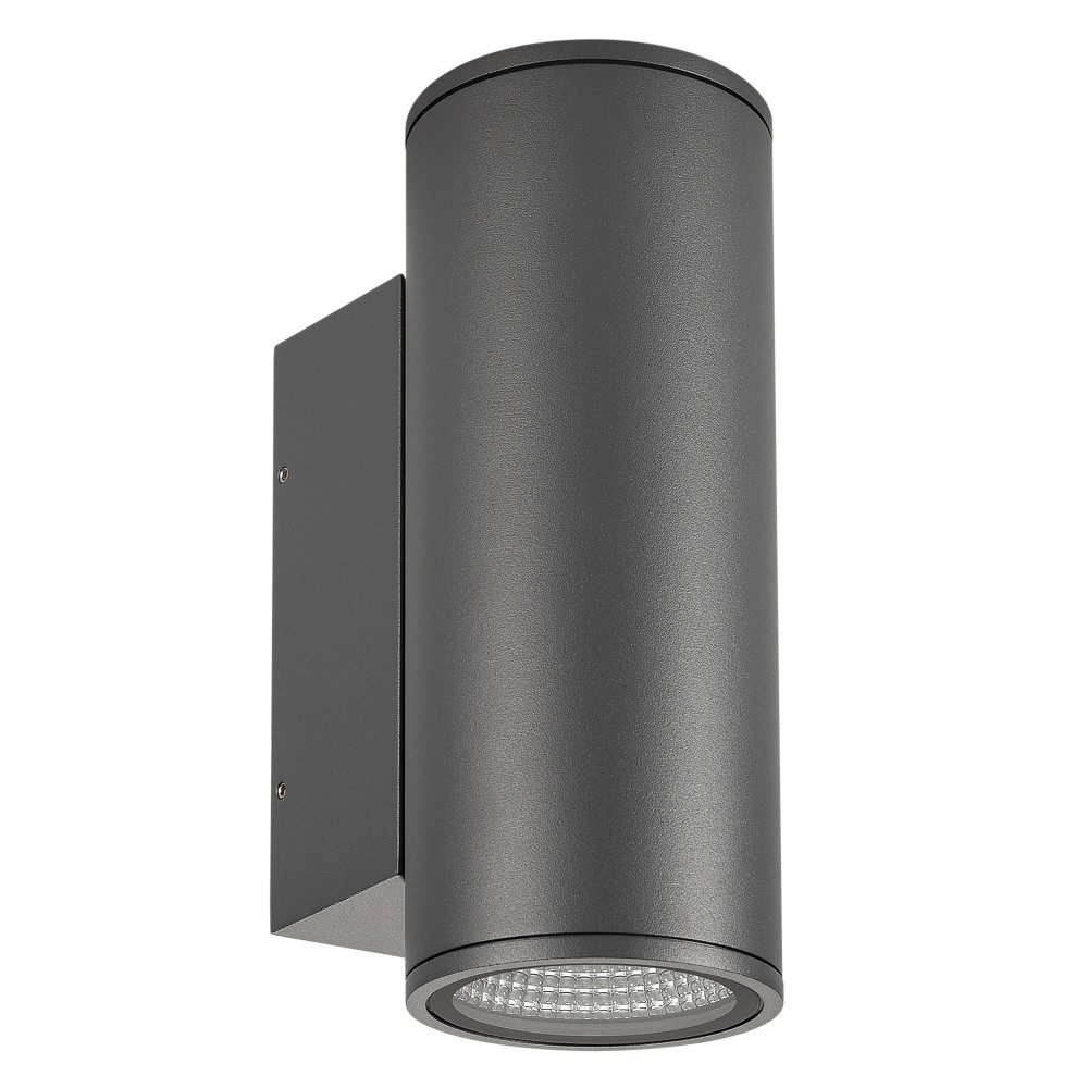 Светильник LGD-FORMA-WALL-TWIN-R90-2x12W Warm3000 (GR, 44 deg, 230V) 029970, Накладной настенный светильник 2x12Вт, серый алюминиевый корпус, оптическое закаленное стекло. Цвет ТЕПЛЫЙ БЕЛЫЙ 3000K, св.поток 1720лм, CRI(Ra)>80, угол 44°, свет вверх-вниз. Размер 133x90x220мм. IP54. Питание AC230V, 24Вт, встроенный драйвер.
