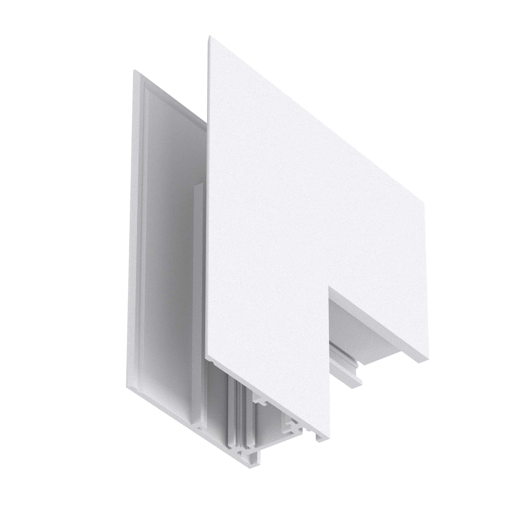 Угловой внешний коннектор для накладного трека MAG-TRACK-2652. DC48V. Материал алюминий, цвет белый. Размеры 100x100x25x62мм.