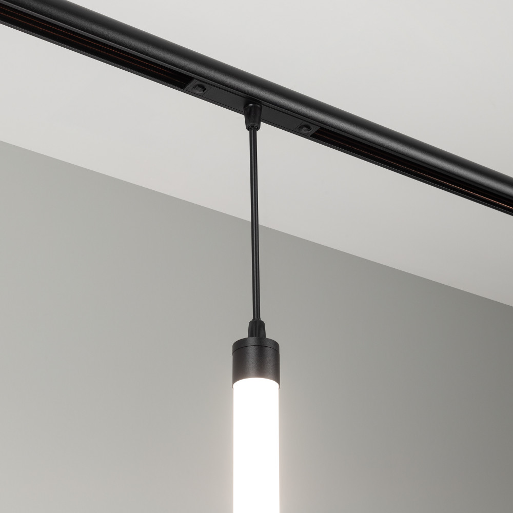 Светильник MAG-FLEX-TUBE-HANG-L500-7W Day4000 (BK, 360 deg, 48V) 034042, Светильник подвесной для магнитных треков серии FLEX. Мощность 7 Вт, св. поток 450 лм, 67 лм/Вт, дневной 4000 K, CRI>90, угол 360°, напряжение питания 48 В. Матовый белый фигурный корпус из ПВХ. Размер: диаметр 30 мм, длина 530 мм. Длина подвеса 195мм. Мо