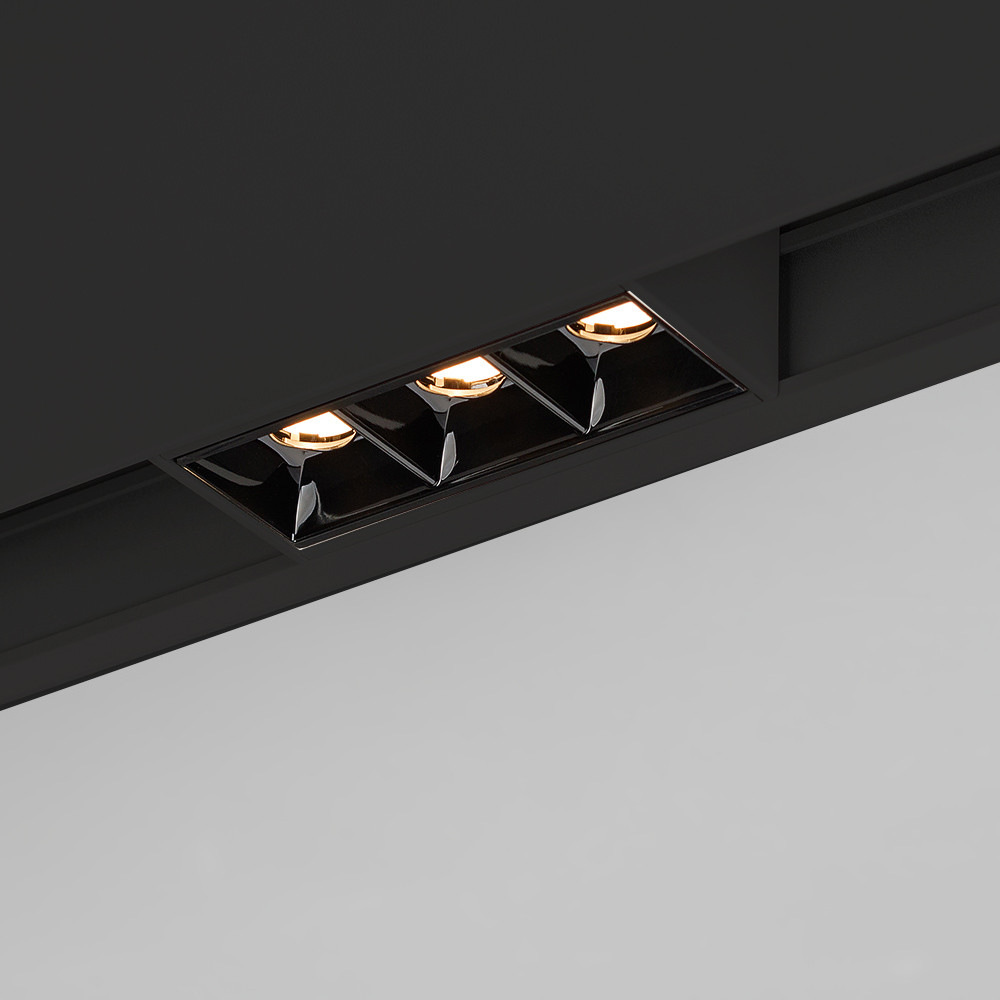 Светильник для магнитных треков шириной 45мм, 3Вт. Цвет свечения ДНЕВНОЙ 4000K, световой поток 226лм, угол 15°, CRI>90. Корпус прямоугольный, металл, цвет черный, IP20. Размеры LxWxH 84x35x43мм. Входное напряжение DC24V, мощность 3Вт. Драйвер DС24V/AC230V