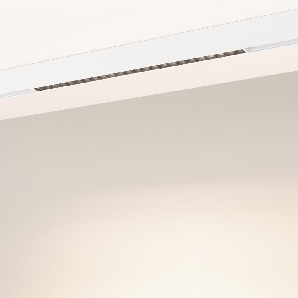 Светильник для магнитных треков MAG-ORIENT шириной 26 мм. Мощность 16 Вт, св. поток 930 лм, 58 лм/Вт, дневной 4000 K, CRI>90, угол 24°, напряжение питания 48 В. Белый прямоугольный корпус из металл, экран поликарбонат, степень защиты IP20. Размер: длина 4