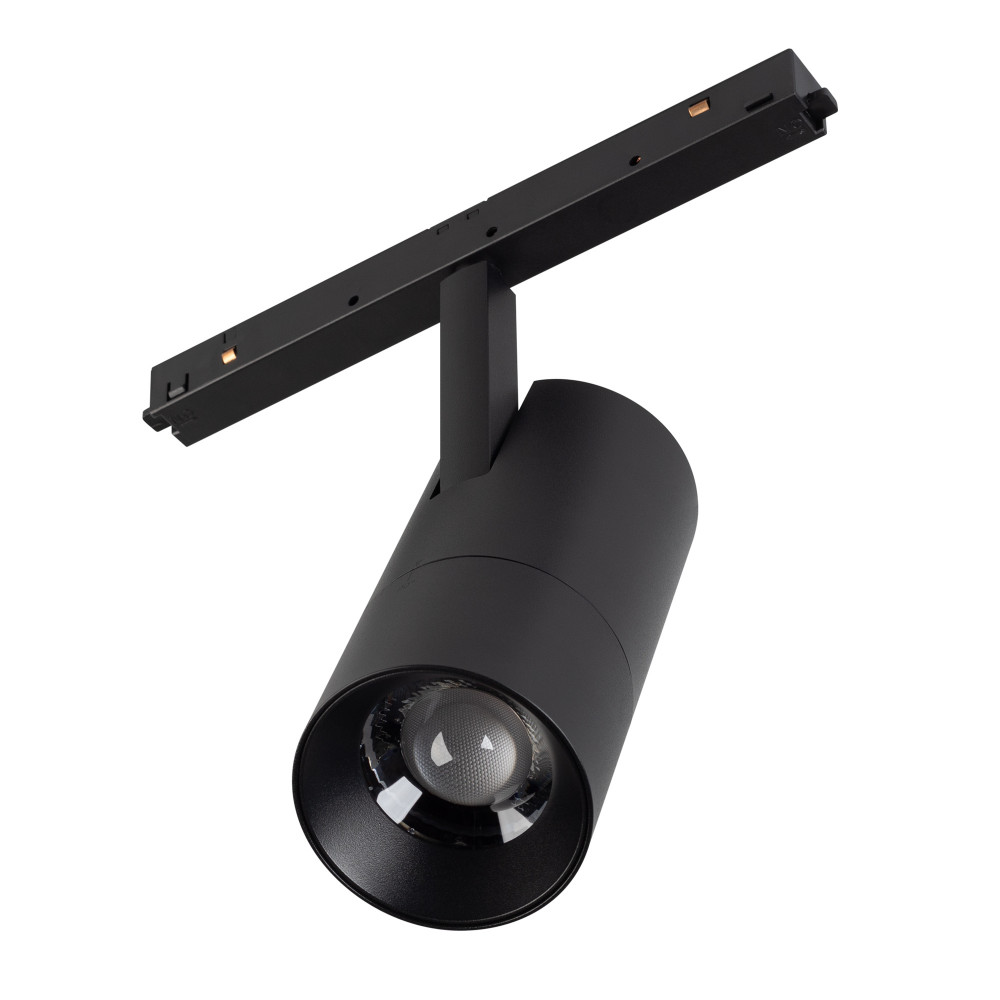 Светильник для магнитных треков MAG-ORIENT шириной 26 мм. Мощность 15 Вт, св. поток 1100 лм, 73 лм/Вт, дневной 4000 K, CRI>90, угол 34-60°, напряжение питания 48 В. Черный фигурный корпус из металл, экран поликарбонат, степень защиты IP20. Размеры LxWxH 2