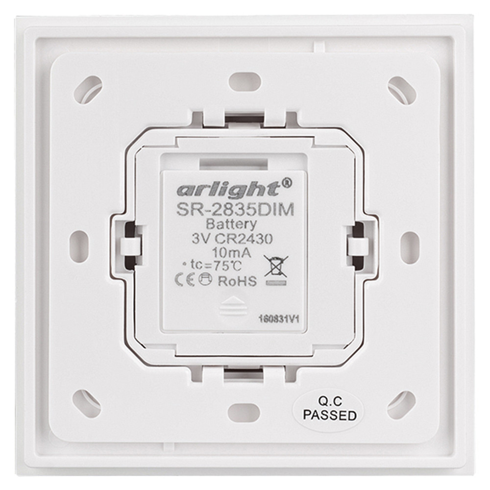 Панель Rotary SR-2835DIM-RF-UP White (3V, DIM) 019485, Накладная поворотная панель на стену для с/д одноцветных лент. Работает вместе с контроллерами серии SR-1009x. Управление по радиоканалу. Питание - 3V батарея CR2430. Размеры 86x86x27 mm. Подходят рамки GIRA S-55, E2, Event, Esprit.