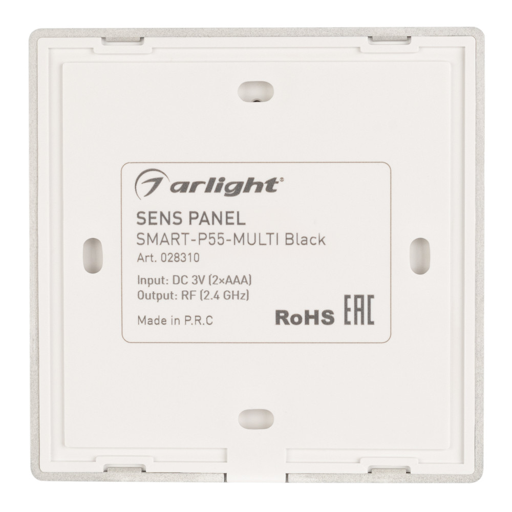 Доставка Панель Sens SMART-P55-MULTI Black (3V, 4 зоны, 2.4G) 028310 , Накладная сенсорная панель 2.4 ГГц, цвет чёрный. Материал - стекло. Для управления RGB+MIX (5-канальными) источниками света (ШИМ), 4 зоны управления. Питание/рабочее напряжение 3VDC от 2xAAA. Габариты 86х86х21 мм. Панель совместима с контроллерами серии S