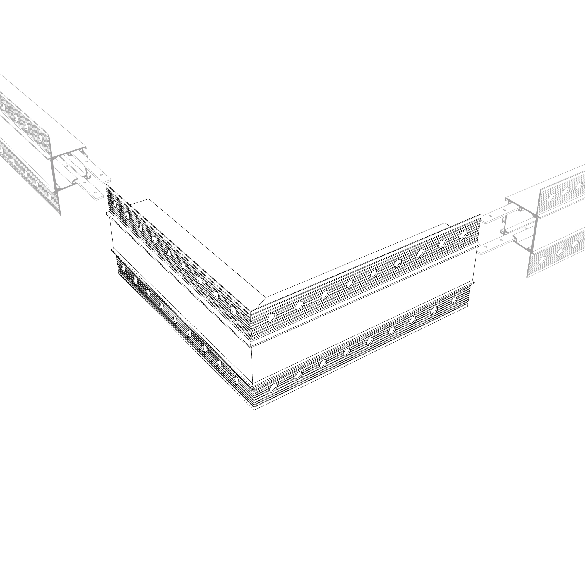 Угловой соединитель в сборе для профиля SL-LINIA32-FANTOM. Свечение наружу. В комплекте угол с экраном, соединители, винты, шестигранный ключ.