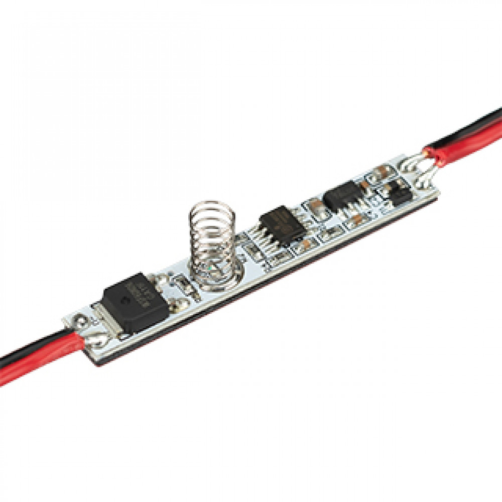 Микродиммер SMART-D13-DIM (12-24V, 1x3A, Sens) 028291, Диммер для монохромной светодиодной ленты (ШИМ), встраиваемый в алюминиевый профиль. Питание/рабочее напряжение 12-24VDC, максимальный ток 3A на канал, 1 канал, максимальная мощность 36-72W. Габариты 45x7.8x7 мм (габариты провода 91x4x2 мм), высота пружин