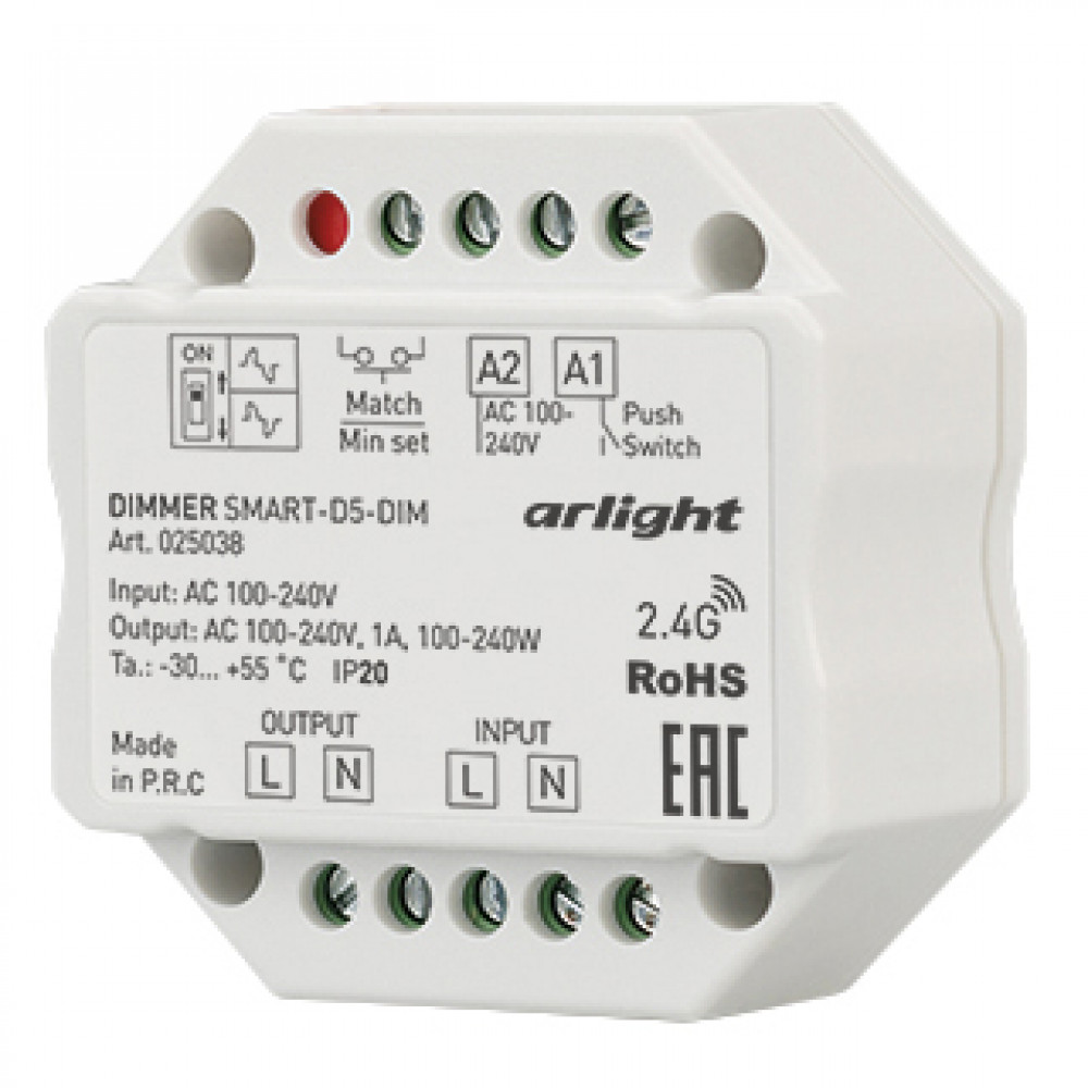 Описание Диммер SMART-D5-DIM-IN (230V, 1A, TRIAC, 2.4G) 025038