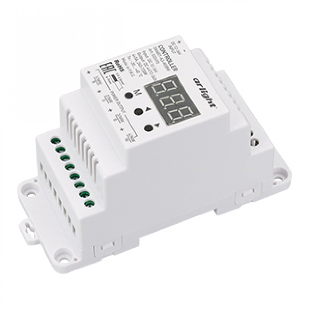Контроллер SMART-K3-RGBW (12-36V, 4x5A, DIN, 2.4G) 022493, Контроллер для светодиодной RGBW ленты (ШИМ). Питание/рабочее напряжение 12-36VDC, максимальный ток 5A на канал, 4 канала, максимальная мощность 240-720W. Винтовые клеммы. На корпусе цифровой монитор. Корпус - PVC. Габариты 115х48х67 мм. Управляется пульт