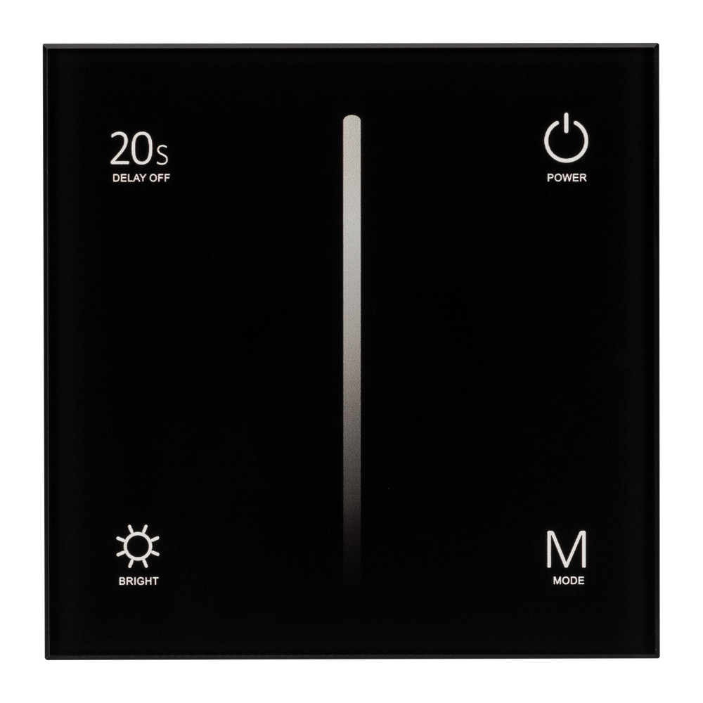 Панель SMART-P6-DIM-G-IN Black (12-24V, 4x3A, Sens, 2.4G) 034780, Встраиваемая сенсорная стеклянная панель 2.4 ГГц, цвет чёрный. Для управления одноцветными источниками света (ШИМ). Управление яркостью с помощью сенсорной полосы. Работает в режиме master/slave и может выполнять функцию независимого контроллера. Питание/