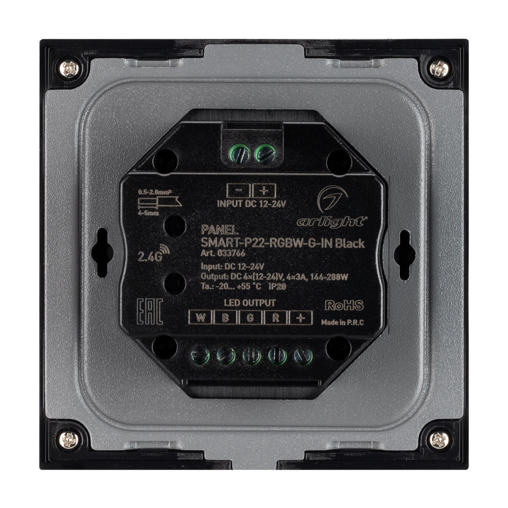 Описание Панель SMART-P22-RGBW-G-IN Black (12-24V, 4x3A, Sens, 2.4G) 033766