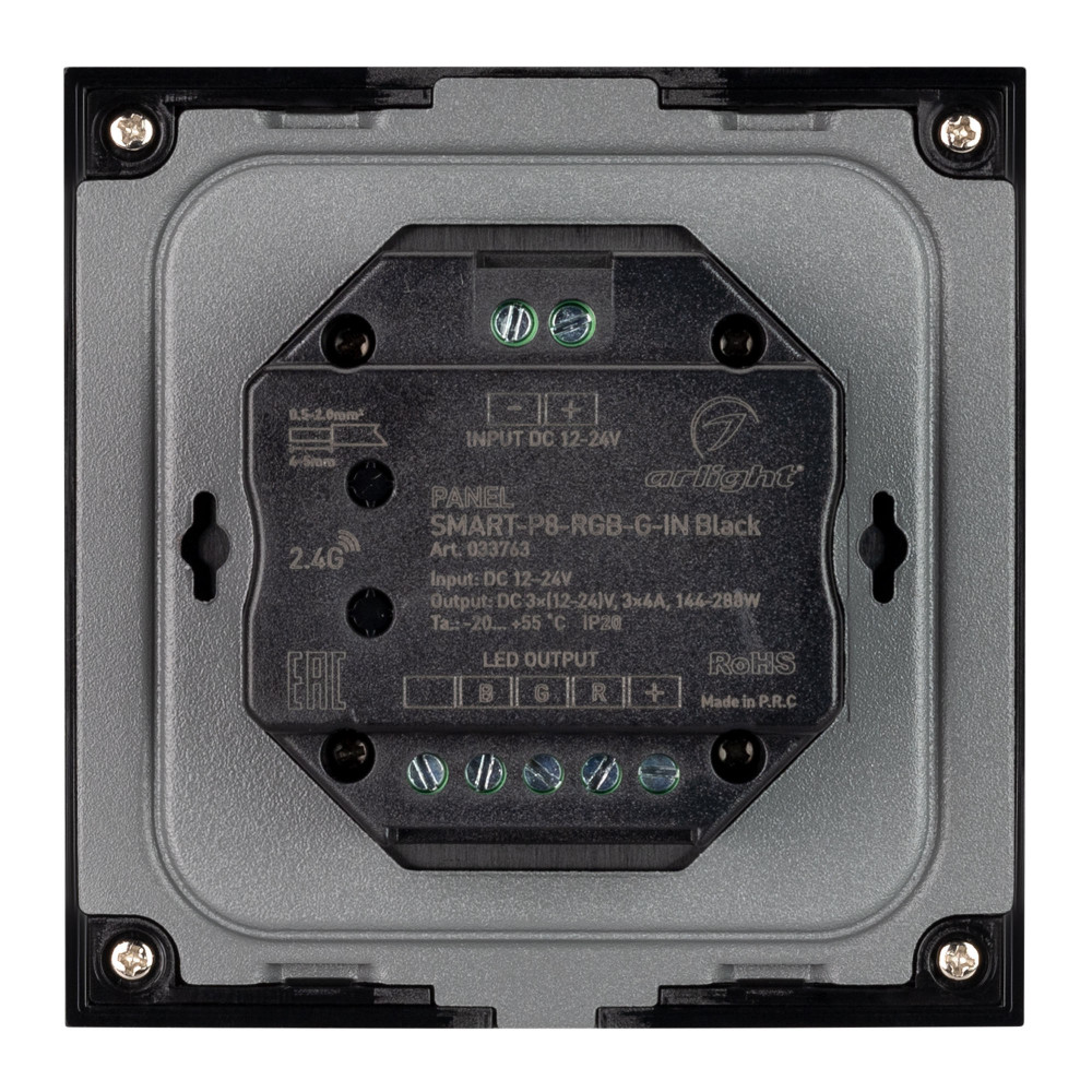 Описание Панель SMART-P8-RGB-G-IN Black (12-24V, 3x4A, Rotary, 2.4G) 033763