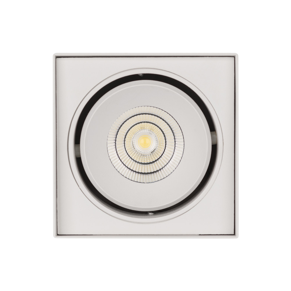 Минимальное количество для заказа 100 шт. Накладной интерьерный светильник. Мощность 11 Вт, св. поток 850 лм, 77 лм/Вт, дневной 4000 K, CRI>90, угол 40°, регулируемое направление луча 30°, напряжение питания 230 В. Белый квадратный корпус из алюминия, сте