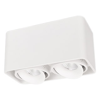 Накладной интерьерный светильник. Мощность 16 Вт, св. поток 1490 лм, 98 лм/Вт, теплый 3000 K, CRI>90, угол 45°, регулируемое направление луча 30°, напряжение питания 230 В. Белый квадратный корпус из алюминия, степень защиты IP20. Размер: длина 195 мм, ши