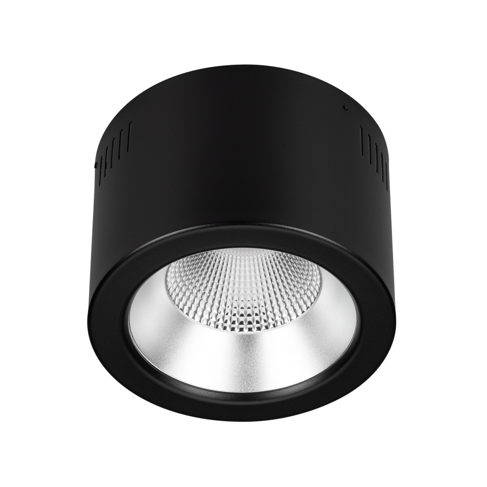 Накладной интерьерный светильник. Мощность 20Вт, св. поток 1800лм, 90лм/Вт, дневной 4000К, CRI>80, угол 50°, напряжение питания 230 В. Чёрный круглый корпус из алюминия. Степень защиты IP20. Размер: O176х130мм. Монтаж накладной. Питание AC220-240V. Драйве