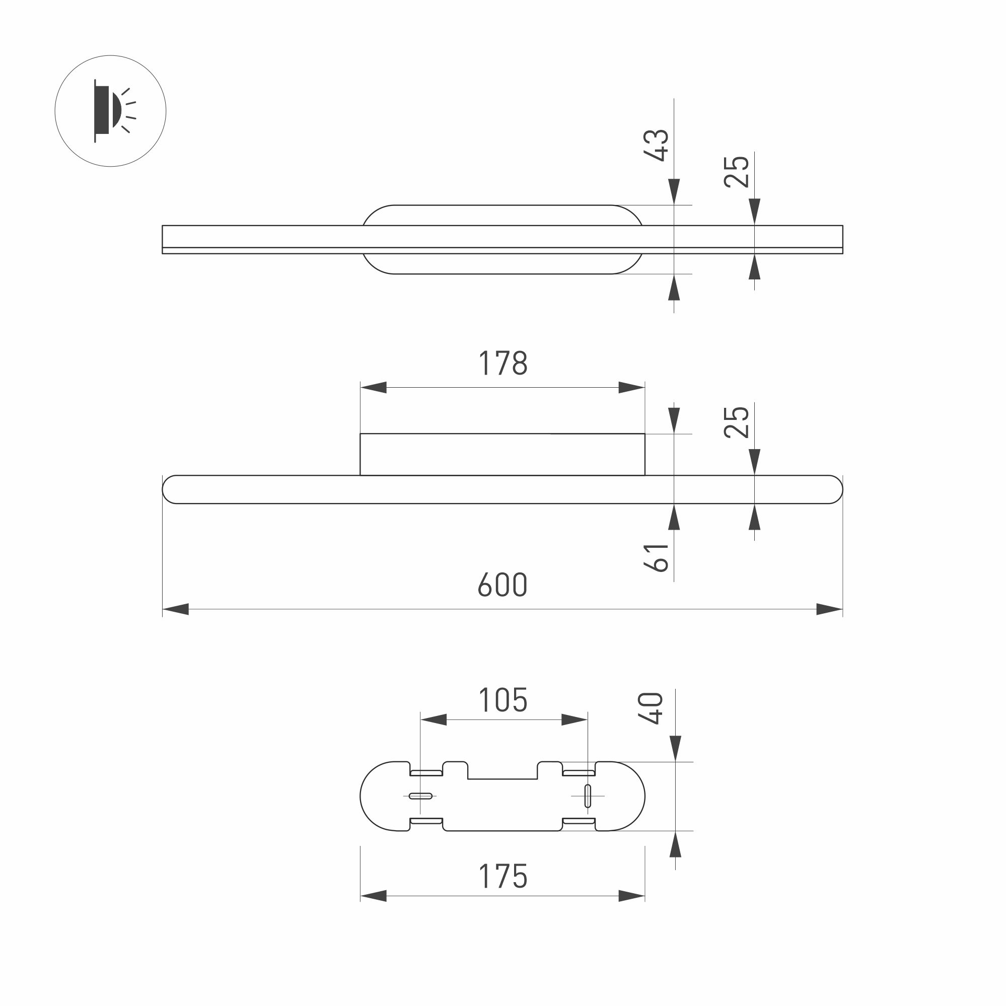 Декоративный настенный светильник. Мощность13 Вт, св. поток 600 лм, 50 лм/Вт, теплый 3000 K, CRI>90, угол 120°, напряжение питания 230 В. Черный фигурный корпус из алюминия, экран из матового поликарбоната, степень защиты IP54. Размер: длина 600 мм, ширин
