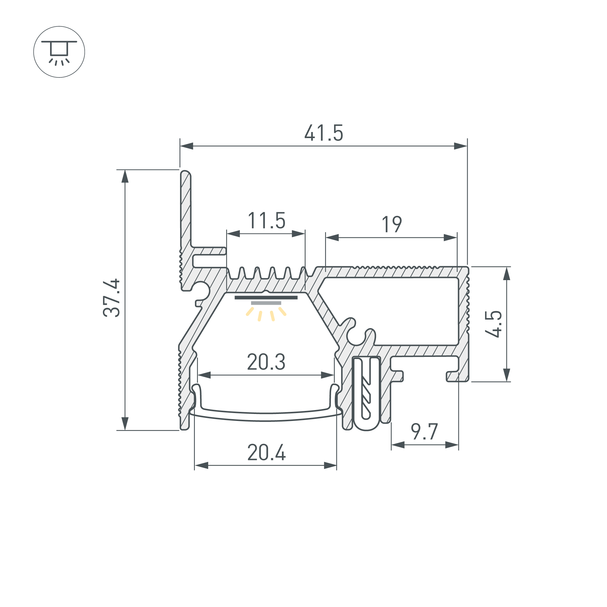 Алюминиевый профиль SLOTT for ARLIGHT для монтажа натяжных потолков (контурная подсветка). Самонесущая конструкция для крепления натяжного потолка с пазом для установки светодиодной ленты. Для создания световых линий в натяжных потолках. Возможность устан