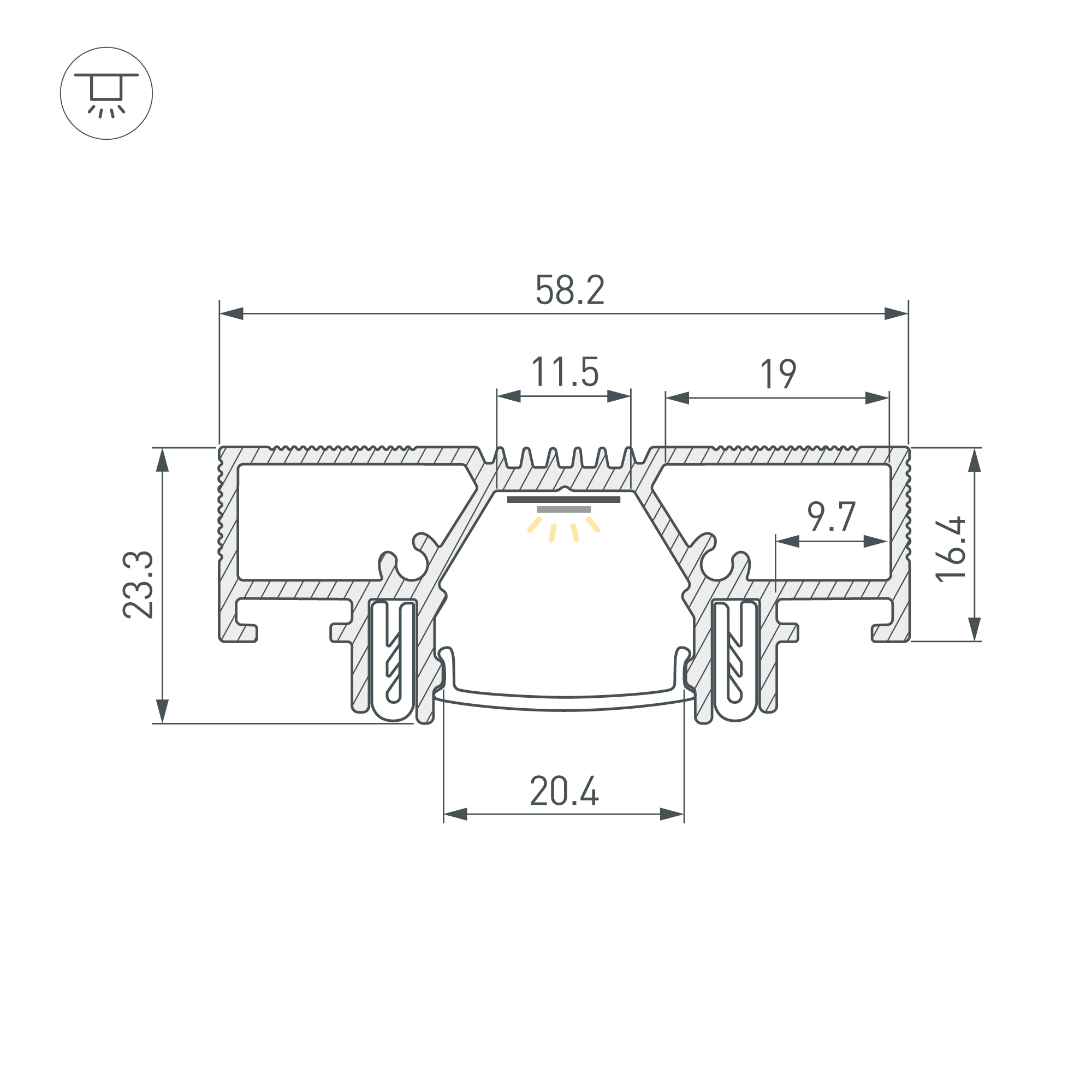 Алюминиевый профиль SLOTT for ARLIGHT для монтажа натяжных потолков (центральная световая линия). Самонесущая конструкция для крепления натяжного потолка с пазом для установки светодиодной ленты. Для создания световых линий в натяжных потолках. Возможност
