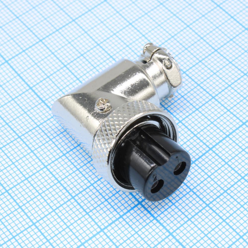 GX16M-2AA, Разъем цилиндрический (розетка) угловой на кабель 2 контакта
