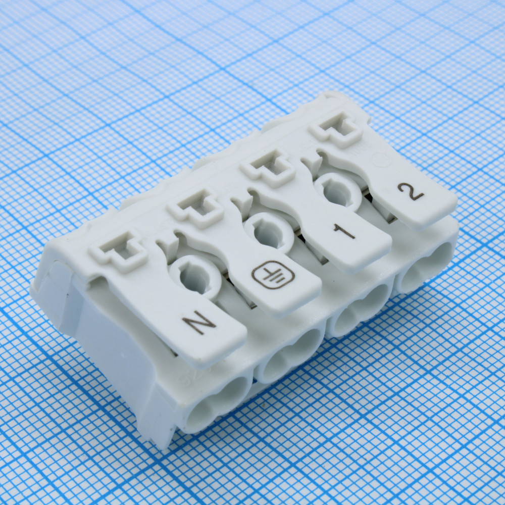 Электромонтажный клеммник на 4 контакта. с заземляющими частями, монтажными ножками, печатью