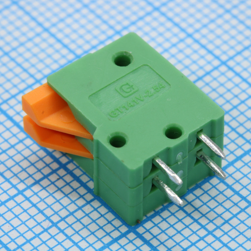 Доставка GT141V-2.54-02P-14-00 , Нажимной безвинтовой клеммный блок 2 контакта. Зажим типа торцевой контакт. Серия GT141V-2.54