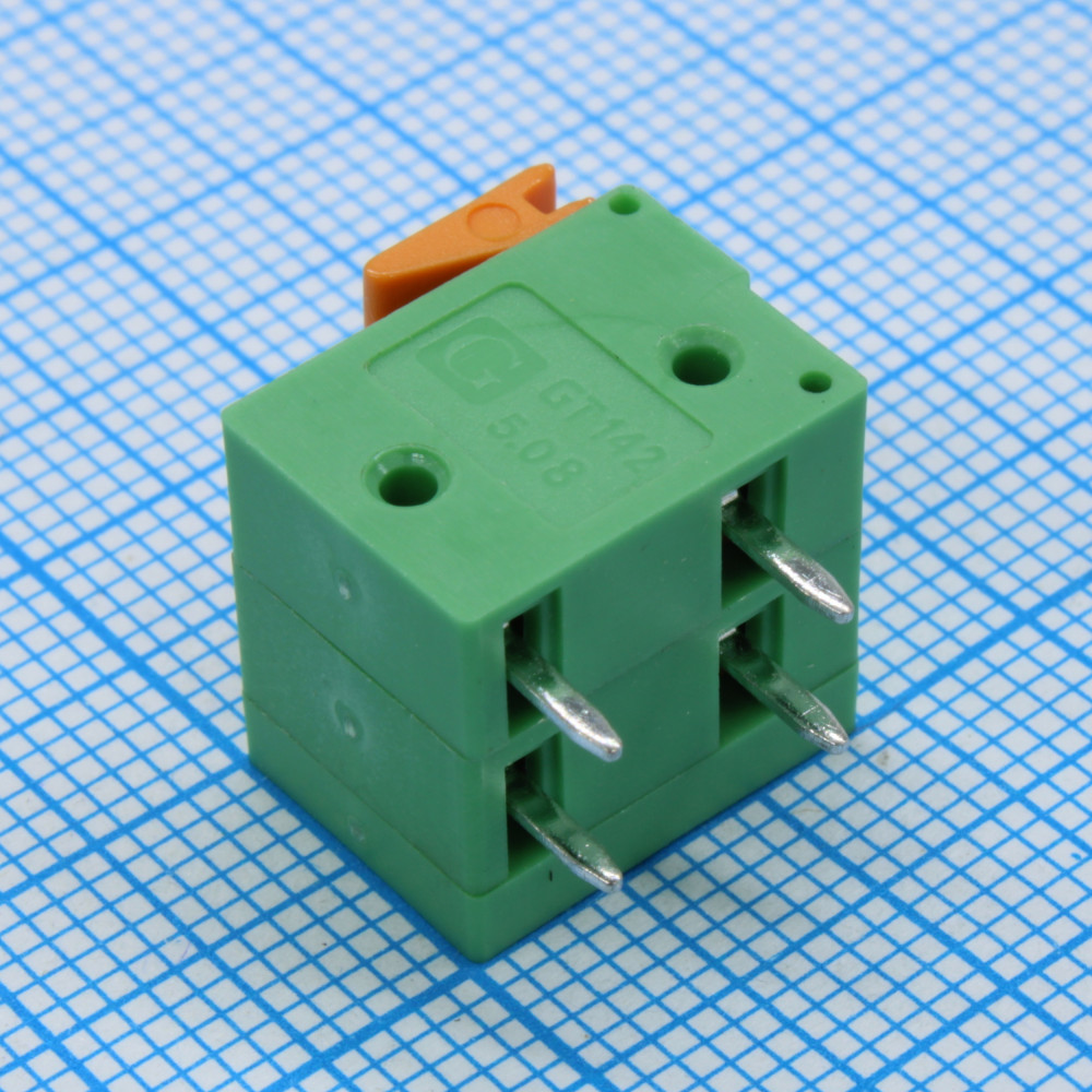 Доставка GT142R-5.08-02P-14-00 , Нажимной безвинтовой клеммный блок 2 контакта. Зажим типа торцевой контакт. Серия GT142R-5.08