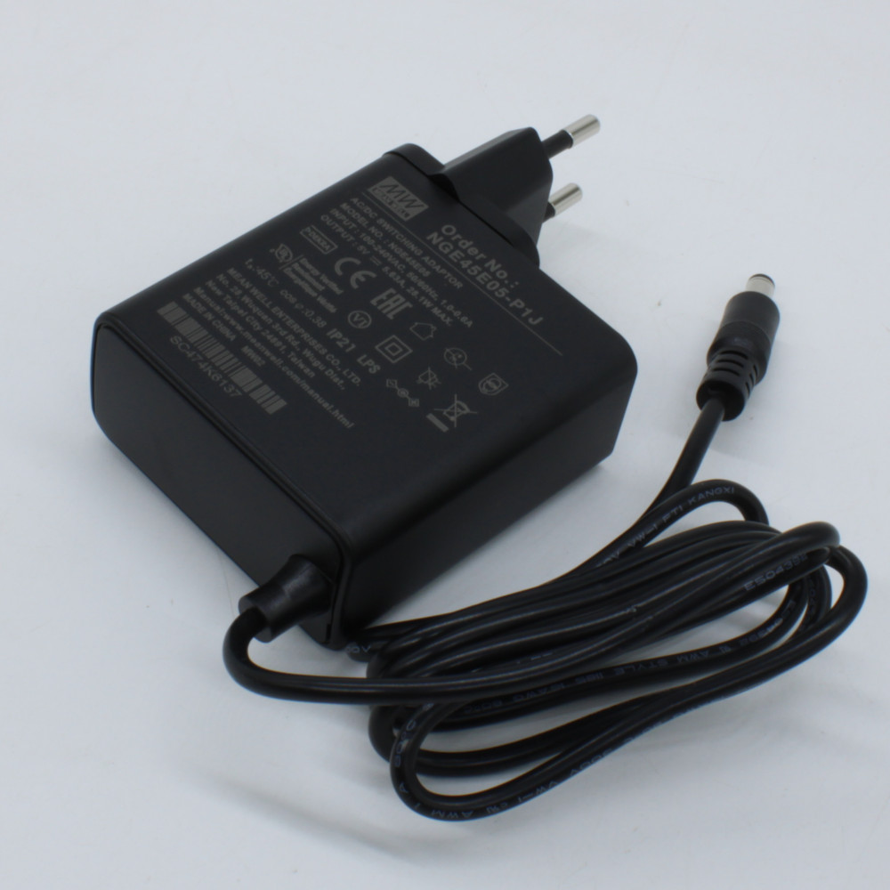 NGE45E05-P1J, AC-DC, 28.1Вт, сетевой адаптер, выход 5В/5.63А, вход 80...264В AC, 47...63 Гц, изоляция 4000B DC, 2xMOPP, 62x30*x65мм, -30...+70C, евровилка, выходной разъем 11мм, диам. 5.5х2.1мм