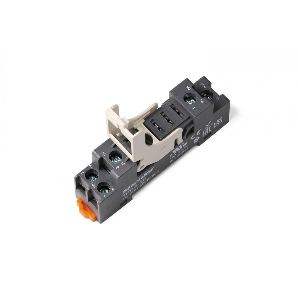 Колодка для реле SRT05-ES+SR20L, Колодка для реле, 1 группа переключающих контактов, винтовая фиксация провода, металл. фикс. ST36M3C, 300V, 16A, для реле серий: RFT, с возможностью установки (поставляется отдельно): пластик. фикс. SR20L (в комплекте), перемычки SR08C
