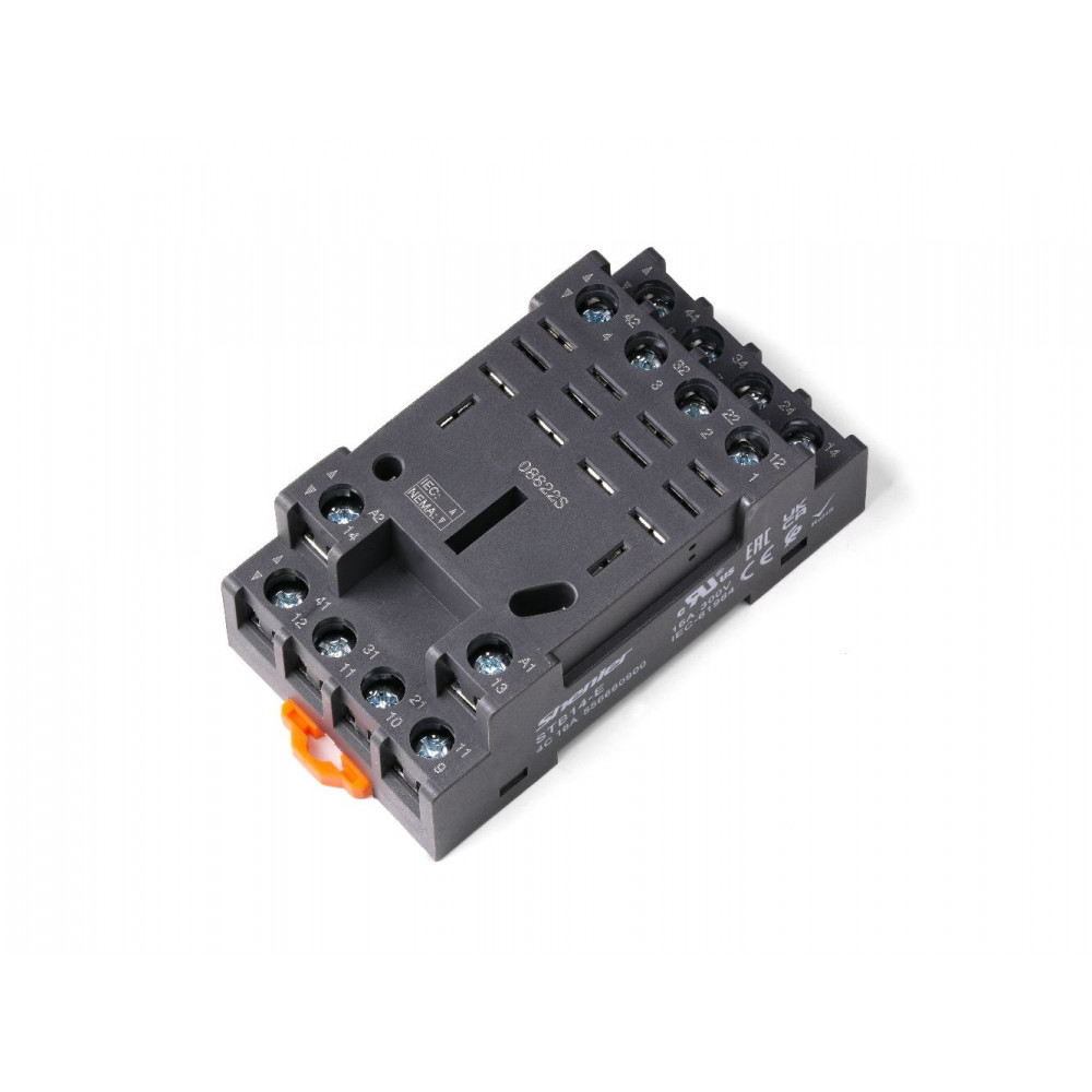Колодка для реле, 4 группы переключающих контактов, винтовая фиксация провода, монтаж на DIN рейку, 300V, 16A, для реле серий: RKL, с возможностью установки (поставляется отдельно): металл. фикс. ST36M4C, модуль AMD