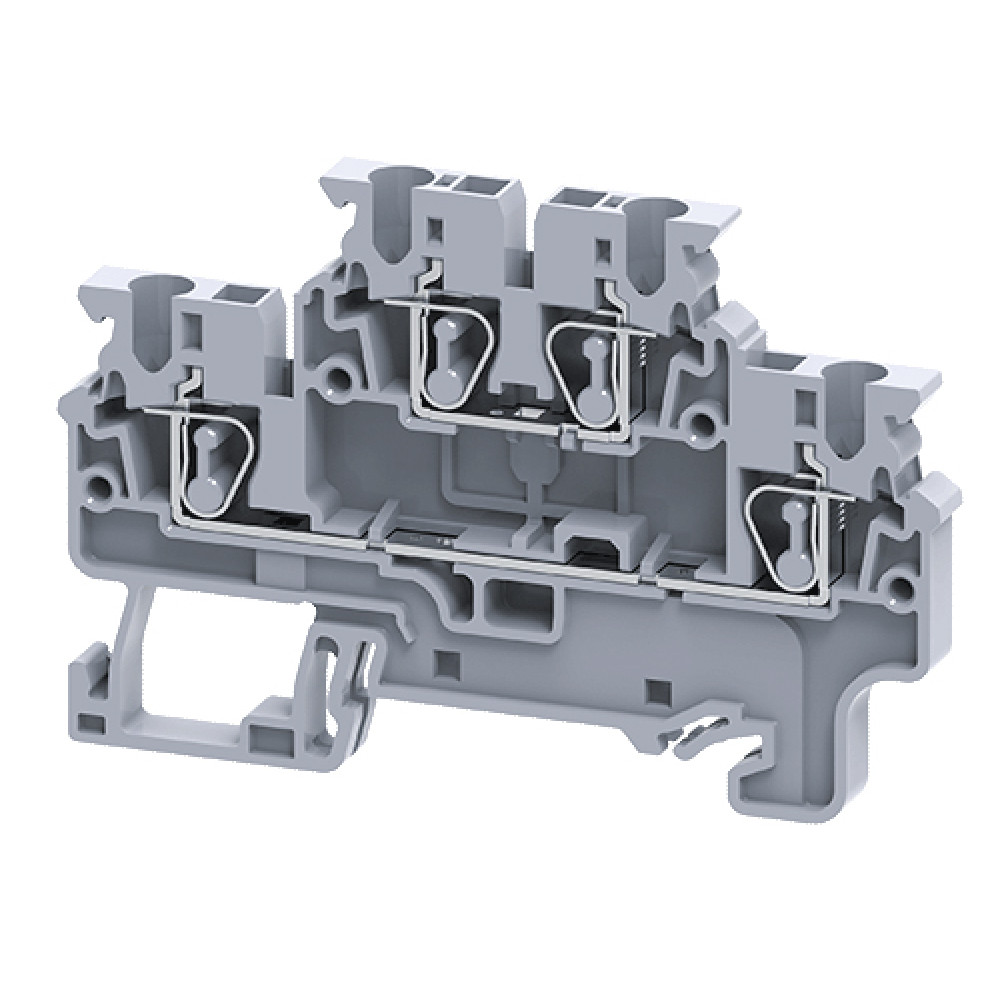 Этажная клемма, 2 этажа, тип фиксации провода: пружинный, номинальное сечение: 2,5 мм кв., 24A, 1000V, ширина: 5 мм, цвет: серый, тип монтажа: DIN35