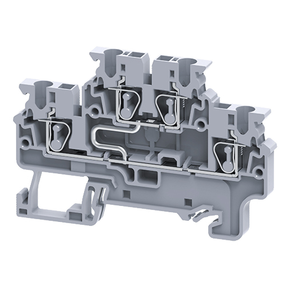 Этажная клемма, 2 этажа, межэтажное соединение, тип фиксации провода: пружинный, номинальное сечение: 2,5 мм кв., 26A, 500V, ширина: 5,2 мм, цвет: серый, тип монтажа: DIN35