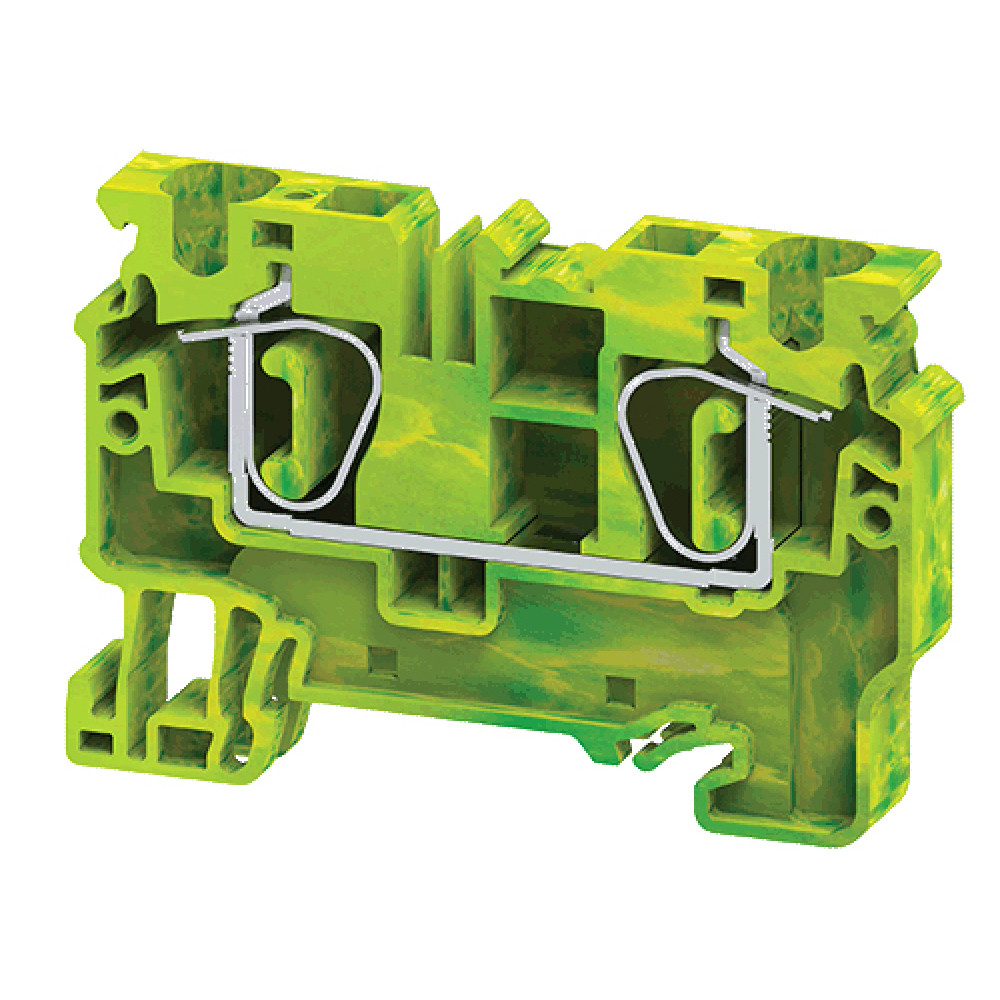 Заземляющая клемма, тип фиксации провода: пружинный, номинальное сечение: 6 мм кв., ширина: 8,2 мм, цвет: желто-зеленый, тип монтажа: DIN35, стандарт GB/T14048.1,