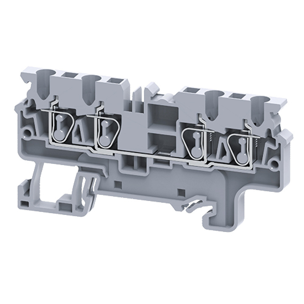 Проходная клемма, 4 точки подключения, тип фиксации провода: пружинный, номинальное сечение: 2,5 мм кв., 24A, 660V, ширина: 5 мм, цвет: серый, тип монтажа: DIN35