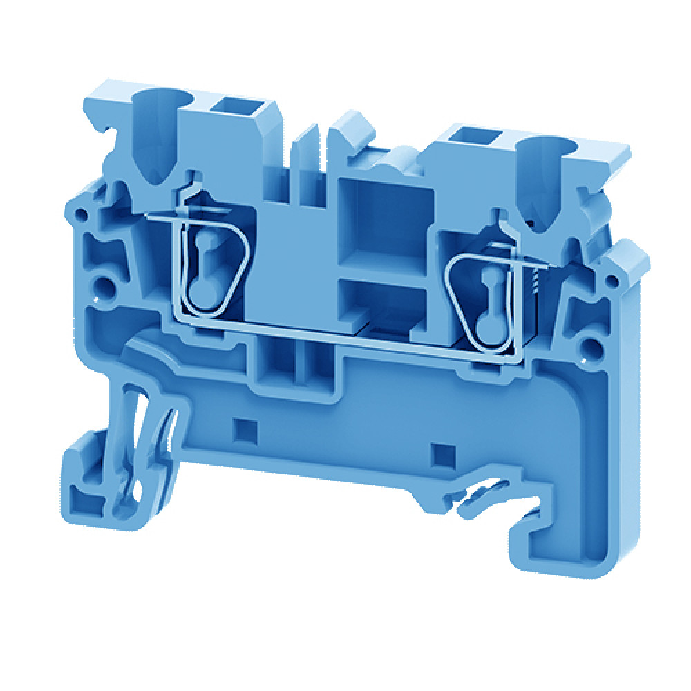 Проходная клемма, тип фиксации провода: пружинный, номинальное сечение: 2,5 мм кв., 24A, 500V, ширина: 5,2 мм, цвет: синий, тип монтажа: DIN35