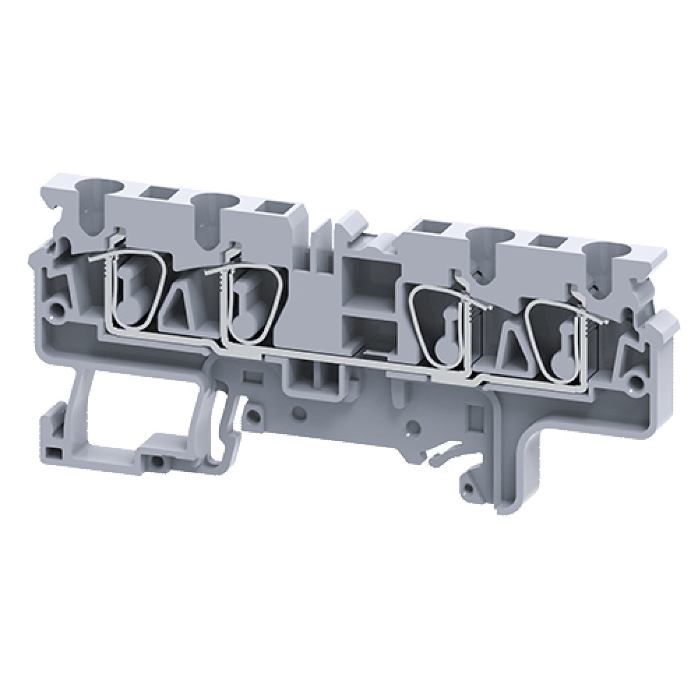 Проходная клемма, 4 точки подключения, тип фиксации провода: пружинный, номинальное сечение: 4 мм кв., 40A, 800V, ширина: 6,2 мм, цвет: серый, тип монтажа: DIN35, стандарт GB/T14048.1,