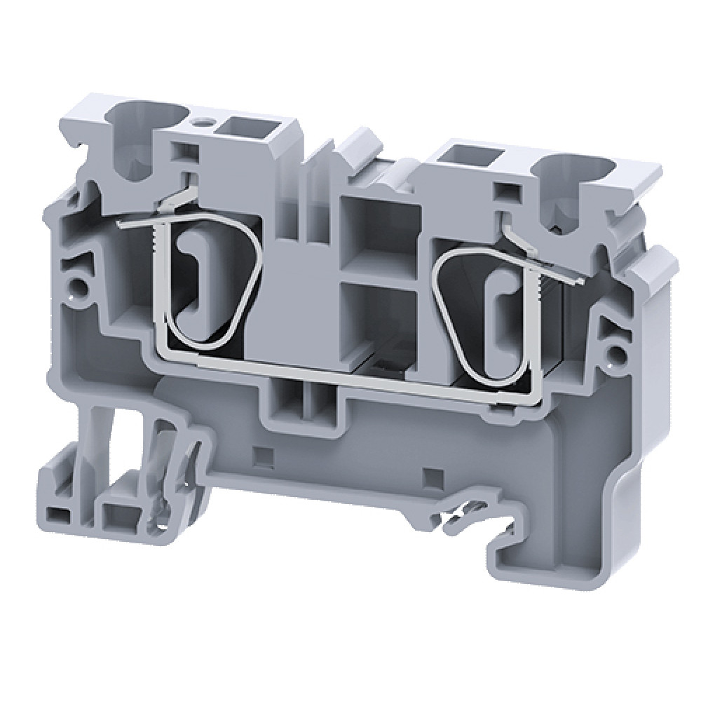Проходная клемма, тип фиксации провода: пружинный, номинальное сечение: 6 мм кв., 41A, 1000V, ширина: 8 мм, цвет: серый, тип монтажа: DIN35