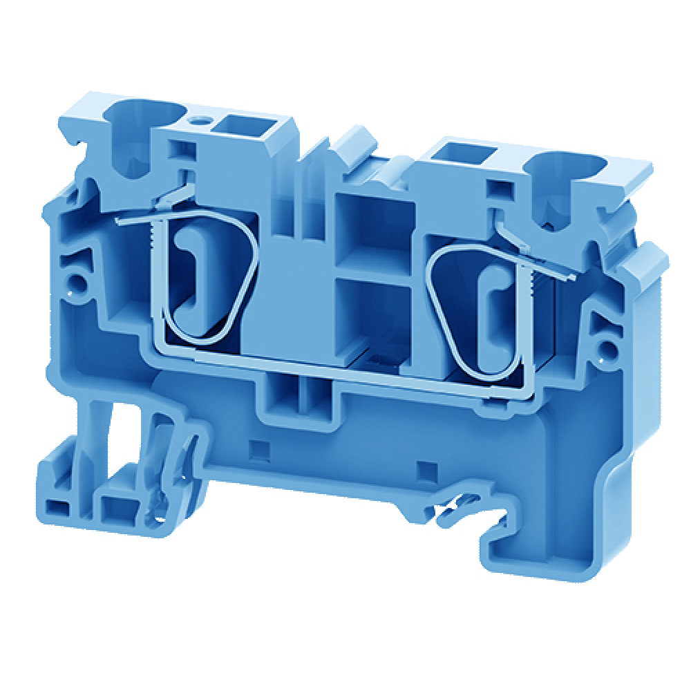 Проходная клемма, тип фиксации провода: пружинный, номинальное сечение: 6 мм кв., 41A, 1000V, ширина: 8,2 мм, цвет: синий, тип монтажа: DIN35