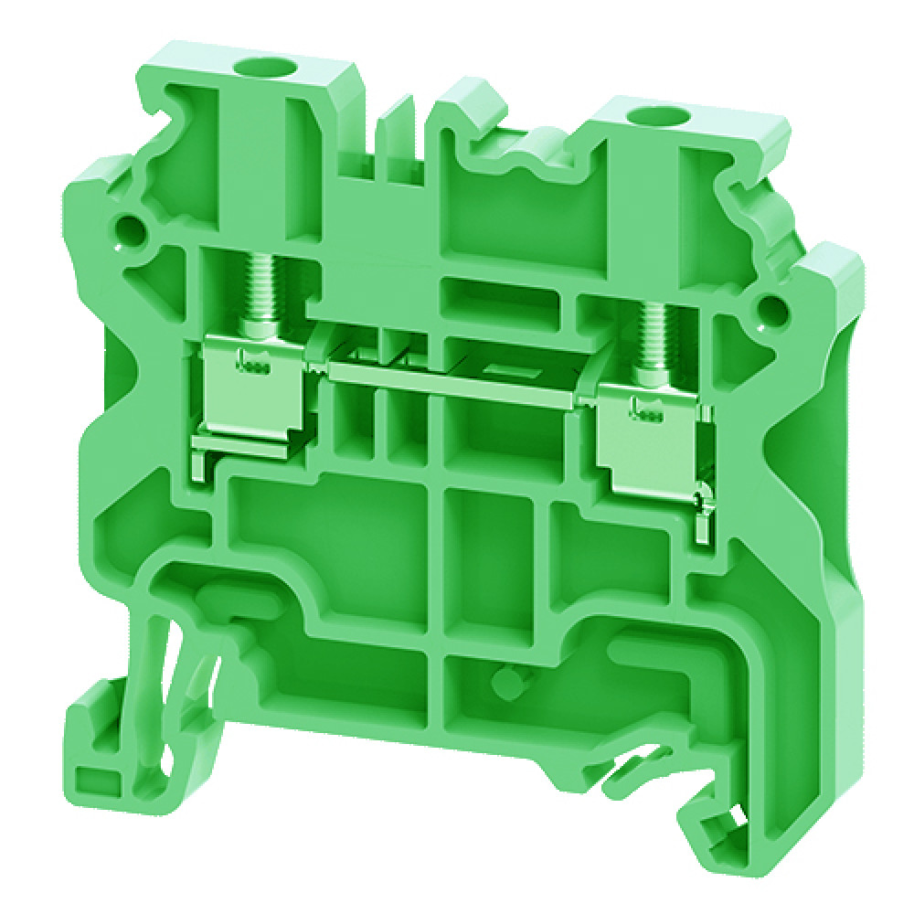 Проходная клемма, тип фиксации провода: винтовой, номинальное сечение: 2,5 мм кв., 24A, 800V, ширина: 5 мм, цвет: зеленый, тип монтажа: DIN35